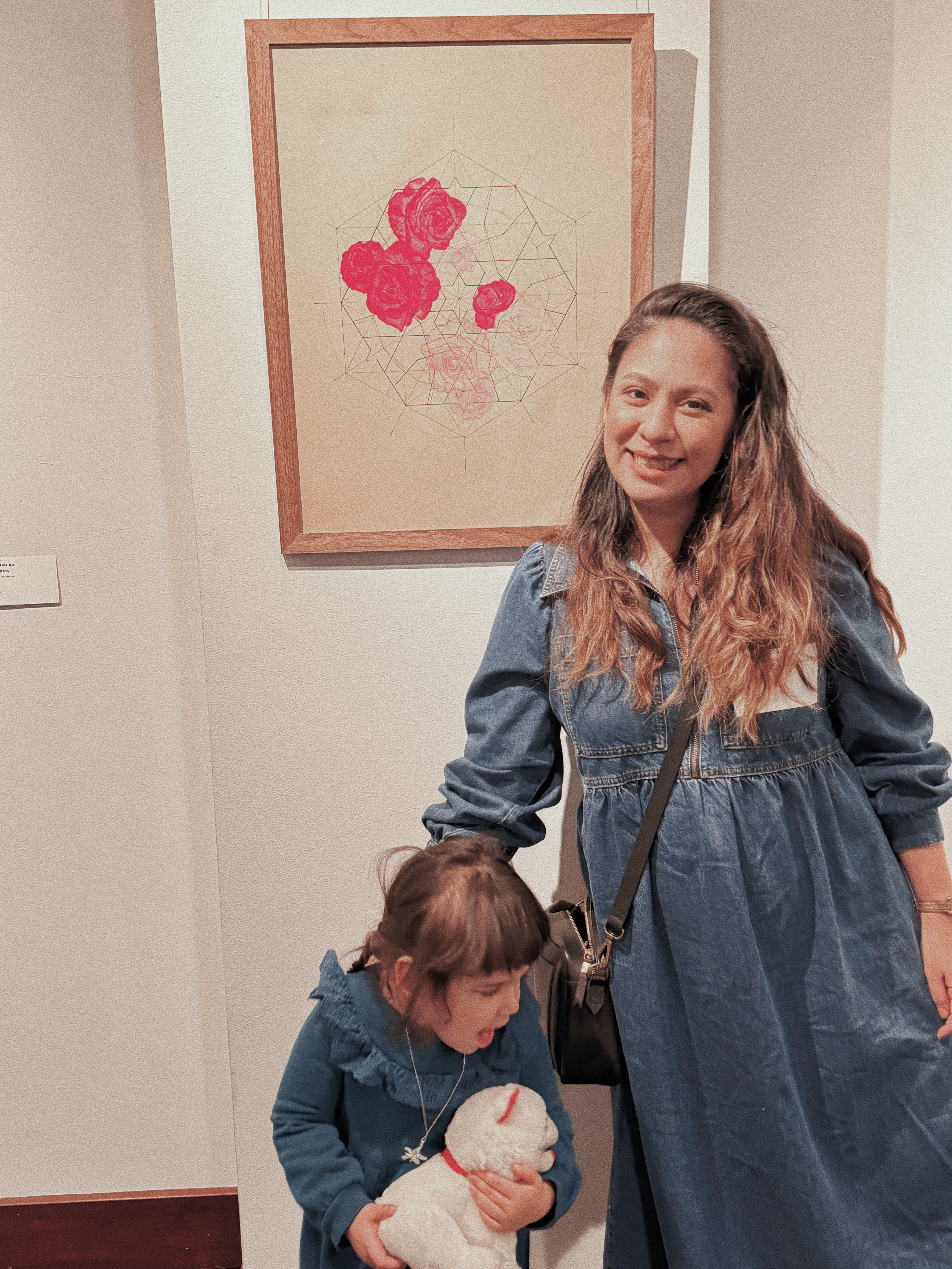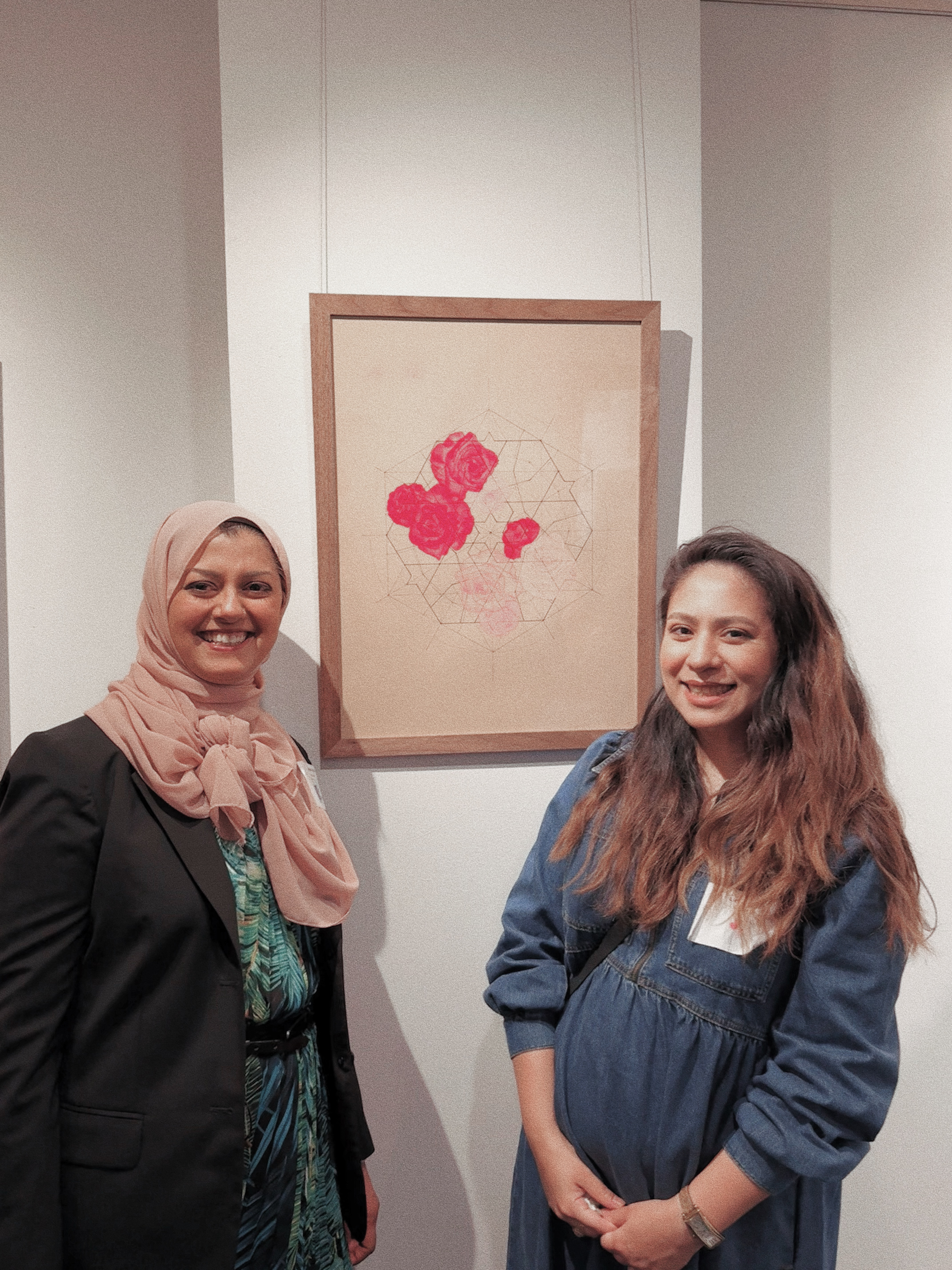 My name is Linah Sofi, and I am honored to have my artwork, Roses on Islamic Geometry, included in this meaningful exhibition. As a Muslim Saudi Arabian of Uyghur descent, my artistic journey reflects a deep exploration of identity, culture, and the struggle of establishing oneself in a foreign land. Through my art, I seek to connect with my roots while embracing my new life in the United States.